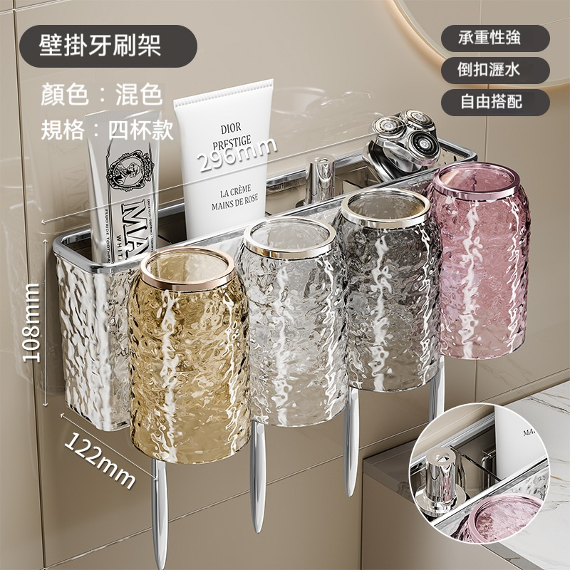 ✨免打孔·強收納✨【水波紋牙刷置物架】無需鑽孔 - 即可將牙刷、水杯、洗漱用品統整上牆✨用簡約美學重塑您的衛浴空間~✨