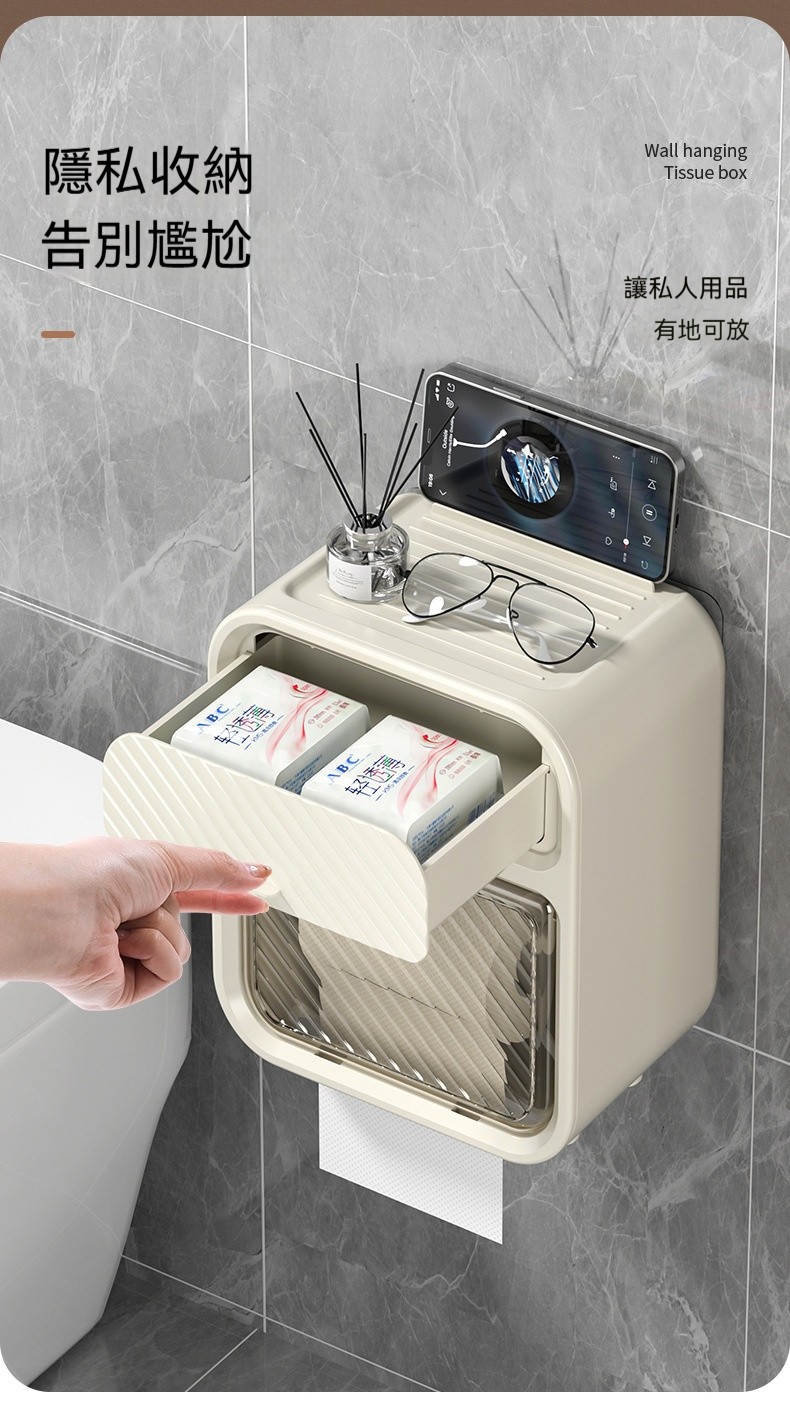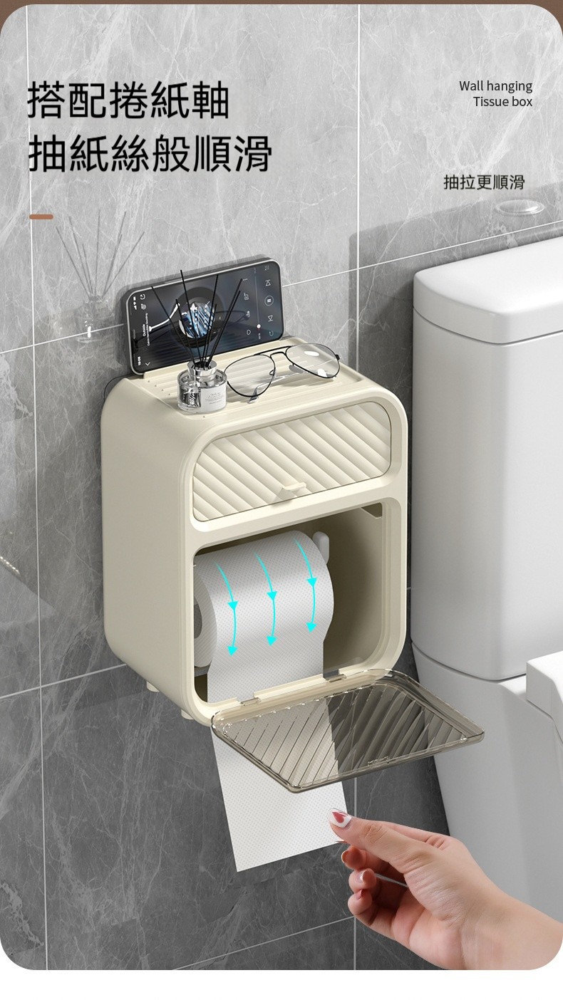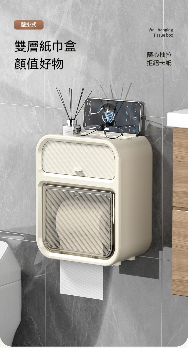 【壁掛雙層紙巾盒】浴室收納美學!防水防淋、防水隱藏式收納,告別尷尬真清爽~✨