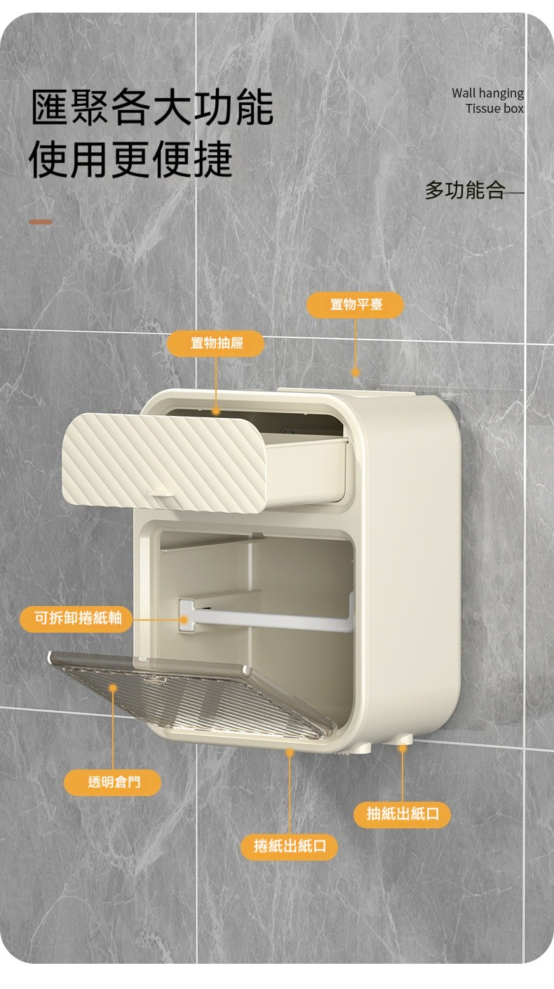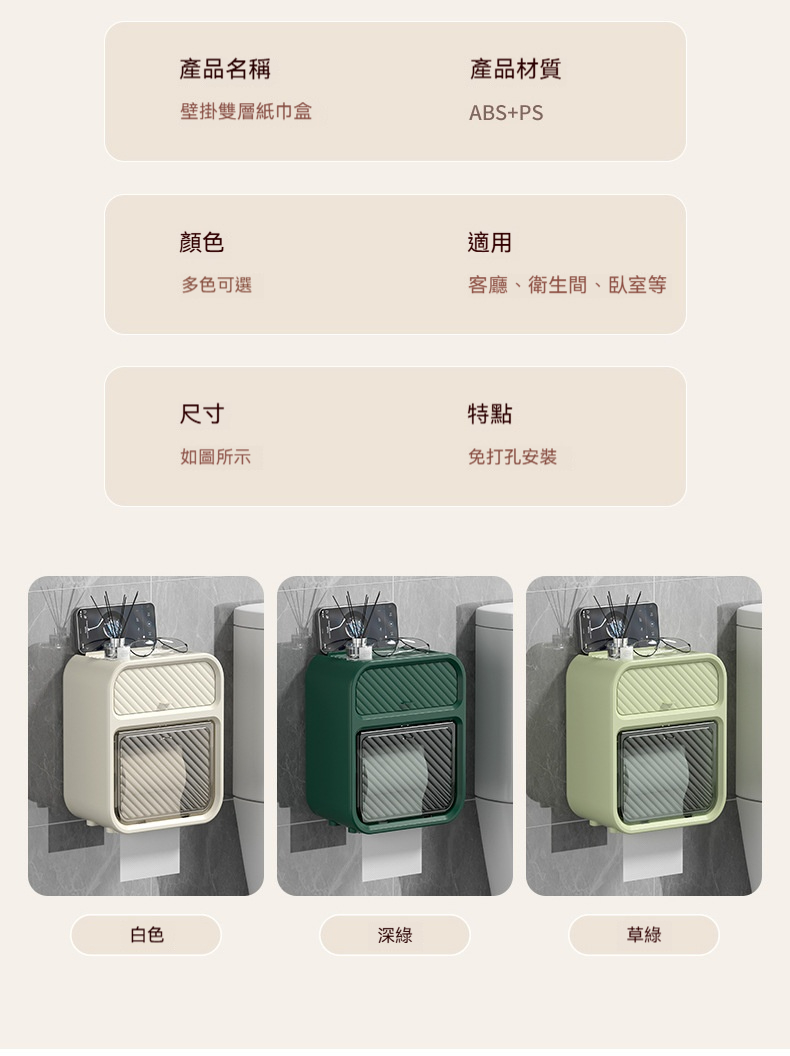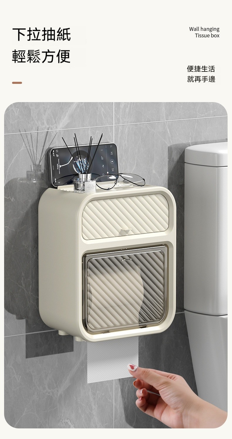 【壁掛雙層紙巾盒】浴室收納美學!防水防淋、防水隱藏式收納,告別尷尬真清爽~✨